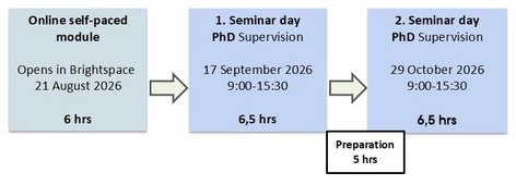 All participants must be involved with a current PhD-supervision to provide a context for the practical assignments, and it is expected that they document their competence development in their professional portfolio.